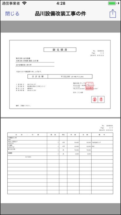 スマートフォンを利用し各種見積もり書や請求書といった書類を作成できるアプリです。混んでいる電車などの移動時間や外出先で書類作成のための作業時間に充てることが可能になり、生産性の向上やお客様へのスピーディーな対応に繋がります。