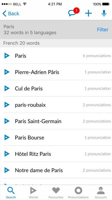 検索でアルファベットを入力することで音声を再生でき、すぐにイントネーションを真似することができます。またいちいち検索する以外にもお気に入りとしてマークをつけれるため、何回も聞きたい時にすぐに再生可能です。