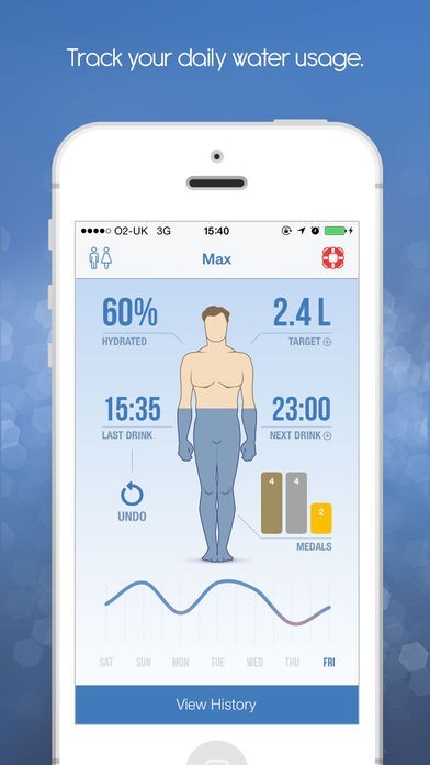 - Get different medals for the levels of hydration you achieve.