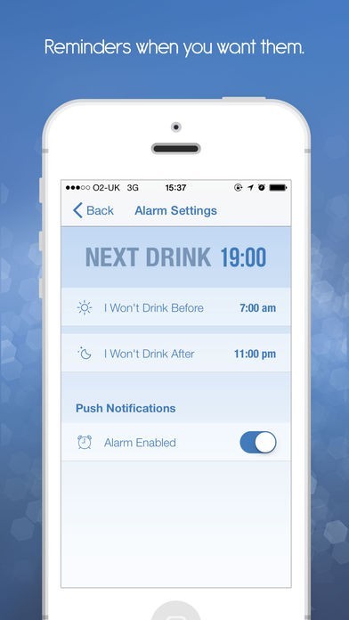 - Optional notifications to prompt you to drink when the app isn't running.