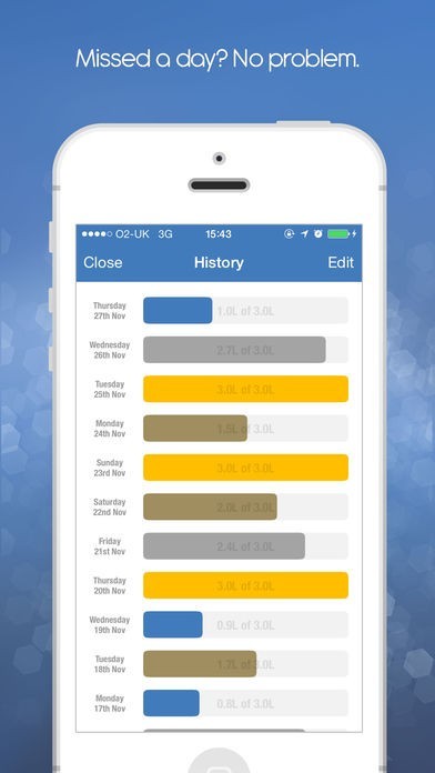 - See your hydration stats for the past 7 days.