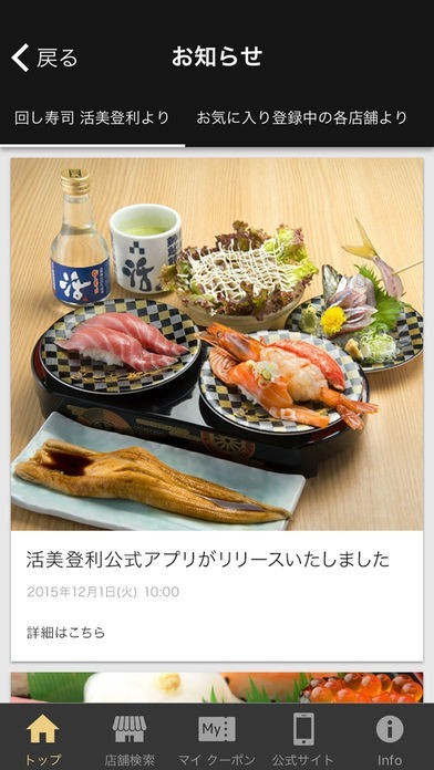 「回し寿司 活美登利公式アプリ」スペック・仕様