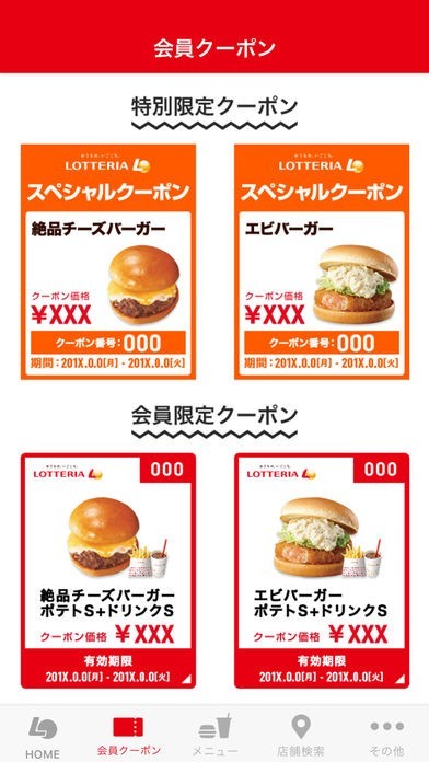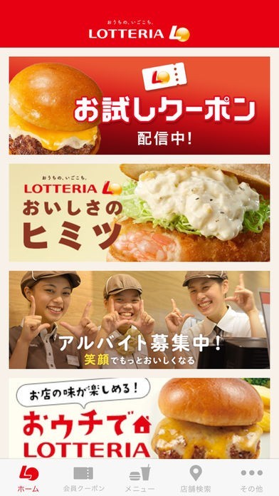 ロッテリアのクーポンが定期的に配信されるため、ロッテリアユーザーには嬉しいアプリです。