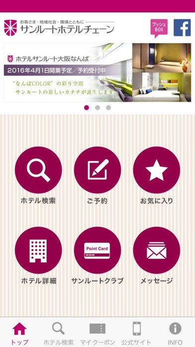 サンルートホテルの情報が見られる公式アプリ!WEB予約も可能!