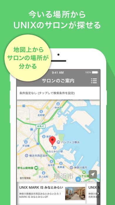 今いる場所の近くにあるUNIXを地図で表示でき、お店まで迷わず行ける