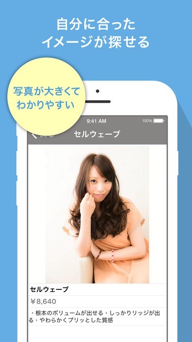 今いる自分の位置からお店までの地図が表示されるので行きたいお店や近いお店を探しやすいです。また、髪型のメニューには、そのスタイリングの写真が掲載されているので自分のイメージに近いスタイリングを探しやすく、スタイリストに希望の髪型を伝えやすく便利です。