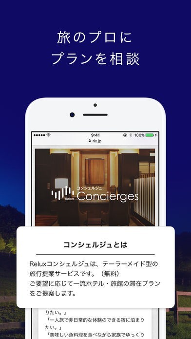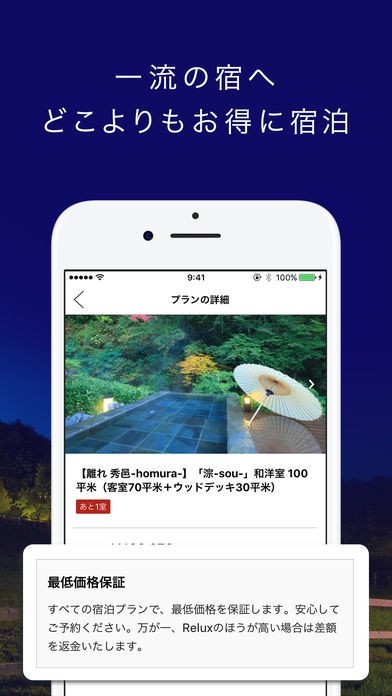 いつもは安さ重視だけど、たまにはラグジュアリーなホテルや旅館に宿泊したい、Reluxはそんな人におすすめのアプリです。 紹介する施設は外観やインテリア、おもてなしや料理なとすべてがパーフェクトで、設備が整っています。実際に利用してみれば、Reluxを使って良かったと思えることでしょう。使いやすさや見やすさに配慮されているので、旅行好きな人はもちろん、旅行に慣れていない人にもおすすめできます。Reluxならではのサービスが満載です。