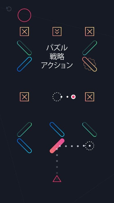 軌道やゴールまで一直線など考えながらボールを発射します。進むとどんどんパズルは複雑になります。時間制限はなく暇つぶしになり、じっくり考えながら遊べます。ボールが当たると、赤いバーが消滅するので注意が必要です。