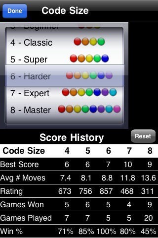 And finally to keep things interesting Ultimate Mastermind keeps the following statistics for each different code size:
