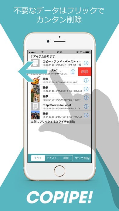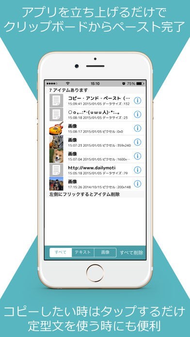 コピー機能を使うだけで、内容をまとめて記録されます。文章はもちろん、画像やURLまで保存ができる。入力エリアやメールなど、タップ一つで簡単に貼り付ける事が可能です。
