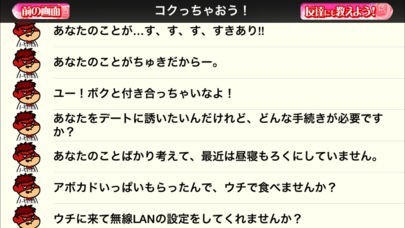 「コクった」後に本体をシェイクすると、もう一度コクってくれます。同じセリフで続けてコクりたい時に便利です。