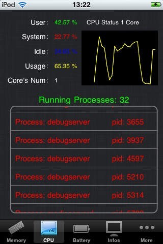 App Storeより引用lAssistant is able to monitor Apple handheld devices’ operating system, including memory information, CPU information, battery information, system information and system health check.