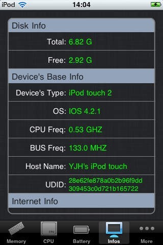 Memory information can quickly monitor and display actually store data of various Apple handheld devices.