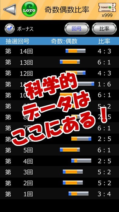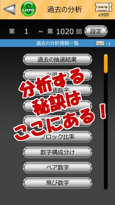 ロト 6 科学的予測ではラッキーデーとラッキーナンバーの提示機能と、過去の抽選データによる分析機能が搭載されており、単発で買うことや、複数枚買って確実に当てに行くときにも役に立ちます。