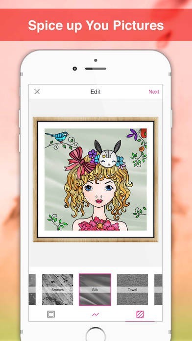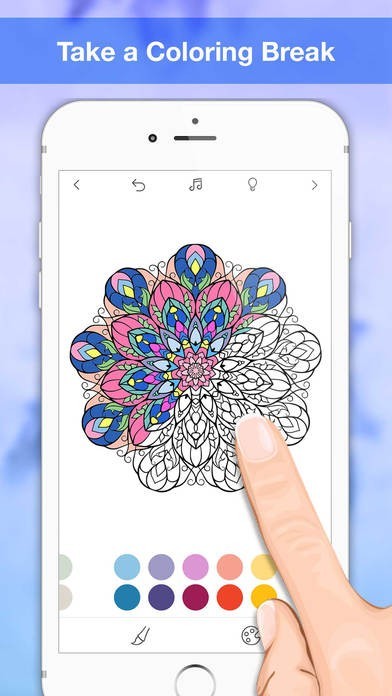 共有機能があり、完成した作品はSNSを使って友達とシェアすることができます。暇つぶしになり、塗り絵に集中することでリラックスした時間を持てます。塗り絵をしながらBGMのヒーリング音楽はリラックス効果があります。