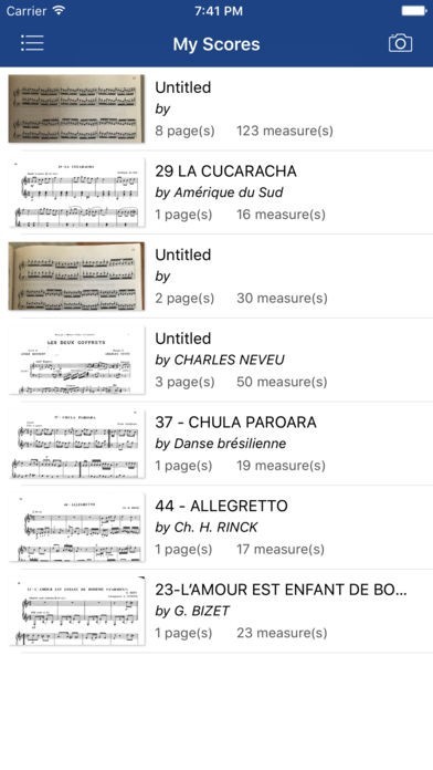 カメラで撮った譜面をページごとに分類できる