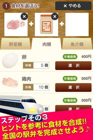 全国各地から素材となる名産物を集めて駅弁を作るシミュレーションゲームが「俺の駅弁と名産物」です。ゲーム内では駅ごとにレシピのヒントが提示されているので上手く素材を組み合わせればおいしい駅弁を開発することができます。実際にご当地名物として知られているような駅弁を作ることができるのですべてのコンプリートを目指して全国を移動しましょう。プレイしていると暇つぶしになるだけではなく、日本一周旅行に出かけたような気分になれます。