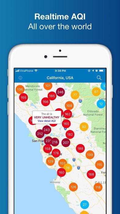 • See real-time air quality information in the USA (California, Los Angeles), Canada, China, Germany, Japan, Mexico, Peru, Colombia, India, Vietnam, Indonesia, Singapore and many other countries