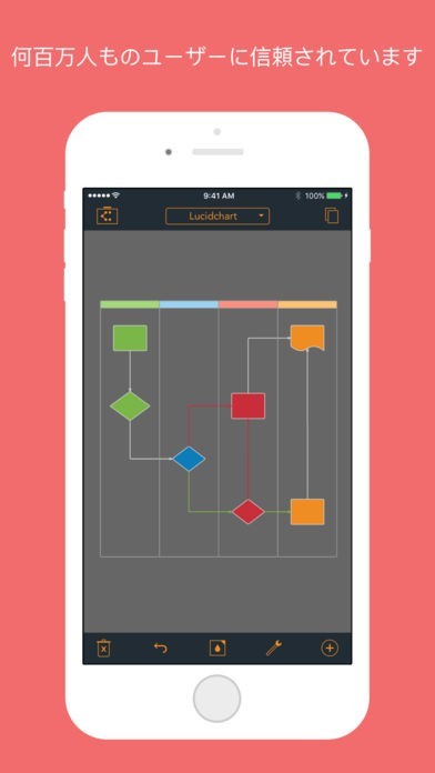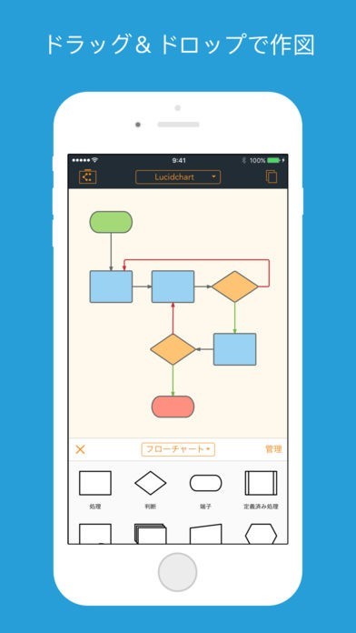 多彩な図形がドロップインドラックですぐ使えて、サインインするだけで自動的に文書が読み込まれるなど、共同作業で図形を使った文書を簡単に作れるところがポイントです。このアプリは、無料で7日間すべての機能が使えるので試しやすくなっています。