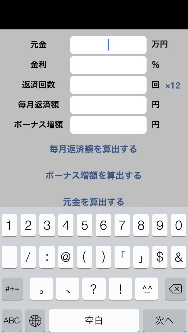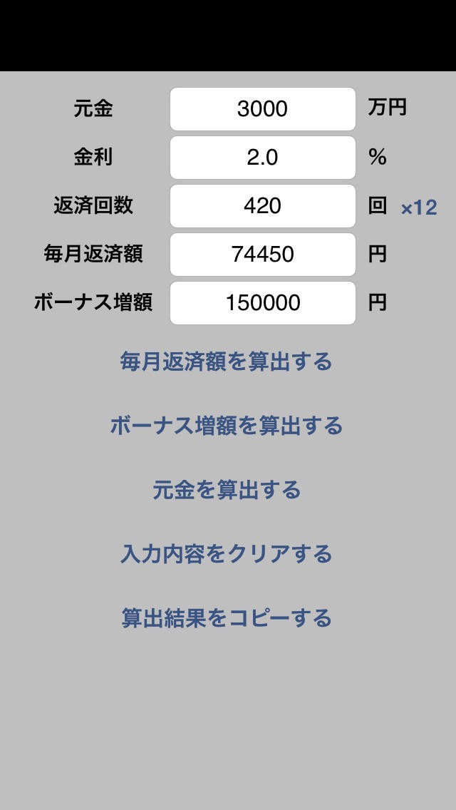 元利均等用として簡単に使える無料の簡易ローン計算機アプリです!