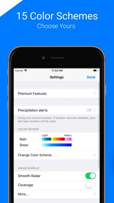 過去6時間に遡って雨雲の動きをアニメーションで視覚化するので、一目で近づいているのか、遠ざかっているのかが分かります。また、色分けで雨の強弱も分かり、直感的に理解できるお天気アプリです。
