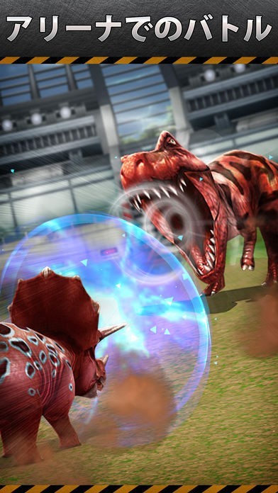 世界ジュノプレーヤーと、アリーナで恐竜同士のバトルを展開