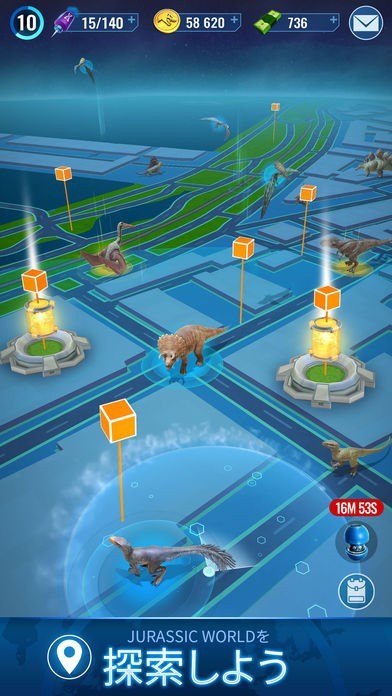 GPS機能による位置情報によって、街のあちこちで恐竜を発見してDNAサンプルを採取することができるゲームとなっていて、散歩やドライブをもっと楽しくしてくれます。