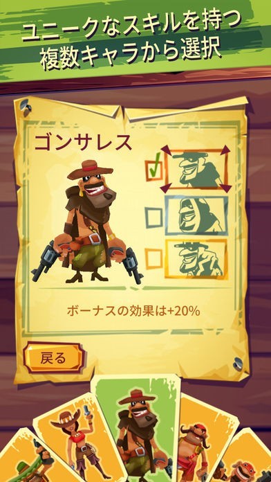 走って、撃って、取り戻すラン&シューティングゲーム。大切な宝石が盗まれました。周囲を悪者たちに囲まれています。ヒーローであるあなたは、撃って撃って、奪われたゴールドを取り戻してください。行く手には敵や障害もたくさん登場。スピーディな展開、次々現れる敵、走って、撃って、宝を取り戻し、さらに先へ。キャラクターは個性ある複数の中からチョイス可能。宝物をゲットするとアップグレード、新しいスキルもゲットできます。あなたの反射神経を駆使して、絶望的な荒野を生き残ってください。