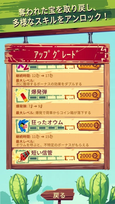 宝物ゲットでキャラをグレードアップ。様々なスキルが解放されます
