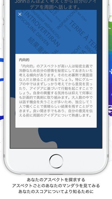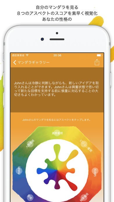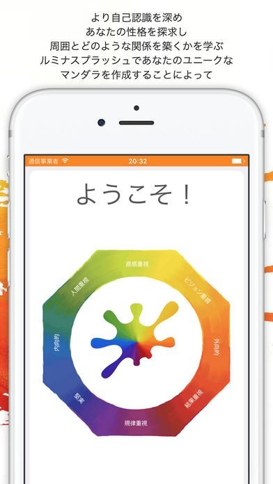 App Storeより引用ルミナスプラッシュアプリではいくつかの質問に答えることで、あなたの性格をルミナ独自で開発された、印象的でカラフルなマンダラを気軽に作成することができます。 自分の性格を知り自己認識を高めることで、職場やプライベートでの人間関係を円滑にするきっかけとなるでしょう。