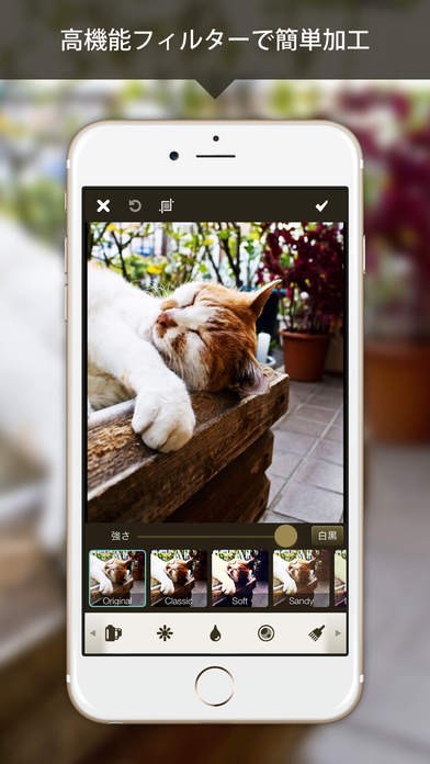 一眼レフのような本格的な写真が簡単にとれる!20種類以上のお洒落なフィルターで簡単に加工ができ、そのままSNSでシェアすることができます。レンズをお好みに加工すれば、写真のイメージも大きく変わります。明るさ、鮮やかさを後で加工することができるので元々の写真が少し暗くて後悔することもありません!レイヤー機能も充実しているので、星柄や玉ボケを写真に重ねれば一気にお洒落な写真の出来上がりです。日本だけでなく世界でも使われている人気のアプリです。