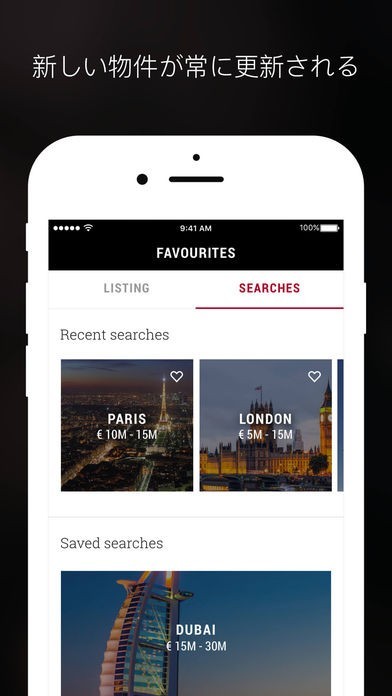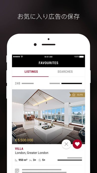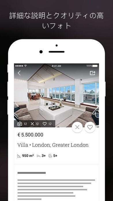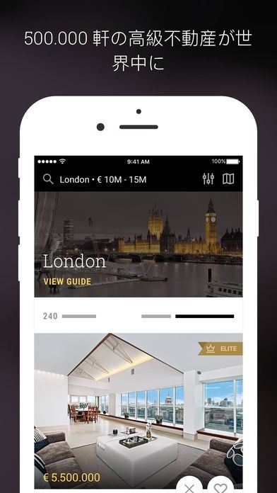 App Storeより引用世界100カ国以上に500,000件を超える高級住宅の数を誇る高級不動産ポータルサイトのリーダーであるLuxuryEstate.comは、ヴィラをはじめ、ビルディング、アパートメント、ペントハウス、ロフト、城、島、土地そして歴史的な邸宅など、業界最大のセレクションを提供しています。