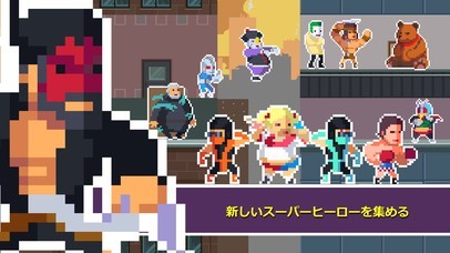 「Pixel Super Heroes」はピクセルで表現されたさまざまなヒーローたちをタップ操作で操って進んでいくランアクションゲームアプリです。敵キャラクターや障害物をタップ操作で繰り出すジャンプなどで避けながら進んでいくゲームとなっていて、町中に散らばっているコインをゲットすることで新しいヒーローを開放することが出来るようになっています。ヒーローたちはそれぞれ異なった個性を持っていて、パワーアップさせることでその個性をさらに引き出すことが可能となっているのでステージをクリアするために必要な能力がなにかを考えながら育てる必要があります。
