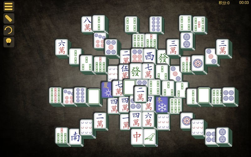 Mahjongg is a solitaire mahjong game . It features three nice looking themes and six layouts of varying difficulty. The goal of the game is to match open pairs of identical tiles and remove them from the board, exposing the tiles under them for play. The game is finished when all pairs of tiles have been removed from the board or when there are no exposed pairs remaining.