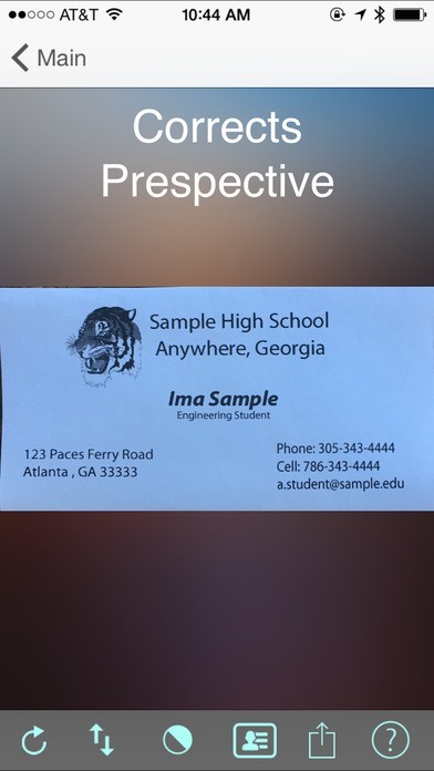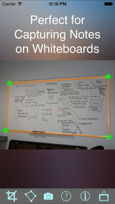 どの角度からでもホワイトボードや名刺の写真を撮ると、このアプリは自動的に(スクリーンショットを参照)の視点を修正します。