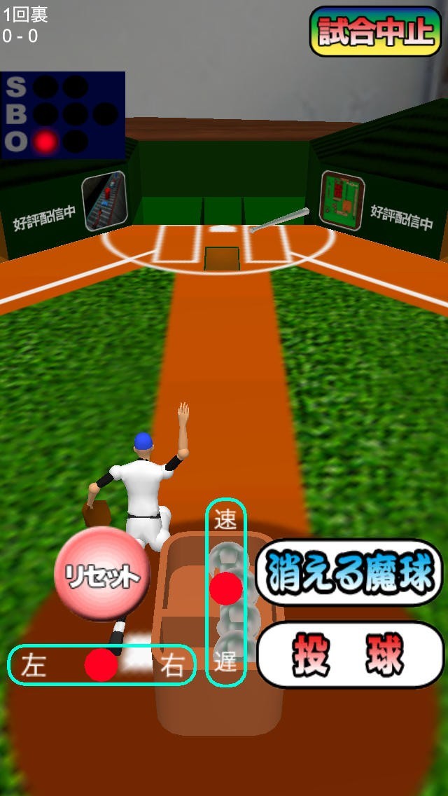 上下左右のボタンを使って、球種や球速を指定することができます。後は投球ボタンを押すだけと簡単です。また消える魔球ボールもあるので、大事な要所で使うことが可能です。