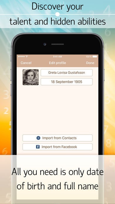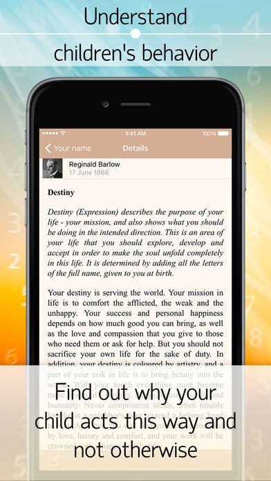 App Storeより引用Do you want to achieve success with ease and pleasure and be glad about your victories? Follow your destiny and you will succeed! But how do you know what destiny awaits you? Each person has his own numbers and letters that bear the code of his success. This is the date of birth and name - information accompanying us all our lives.