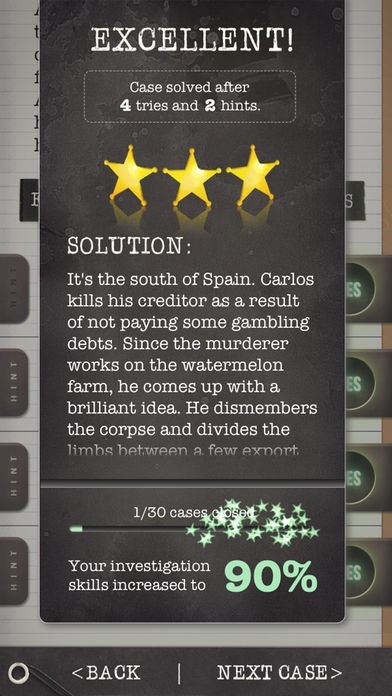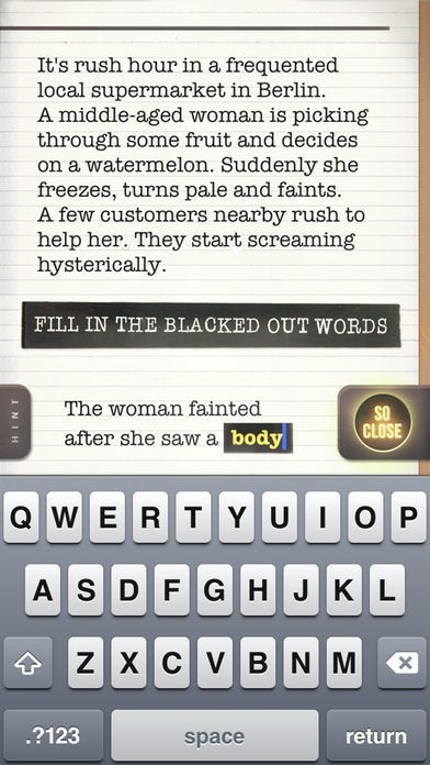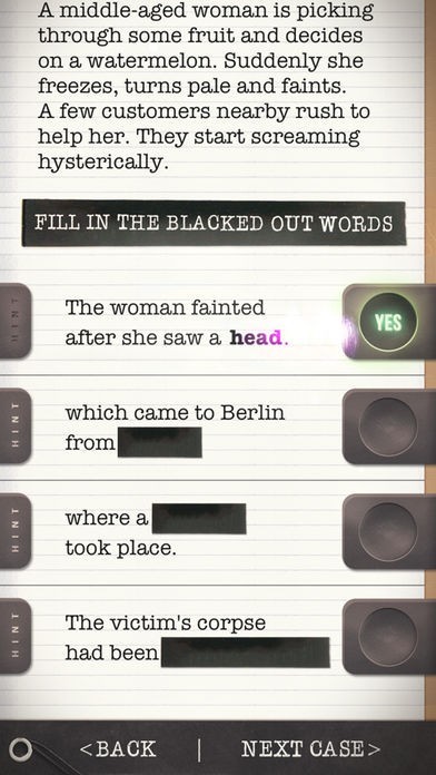 App Storeより引用Censored Files is the one and only crime fiction word-puzzle game!