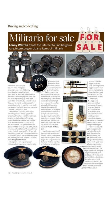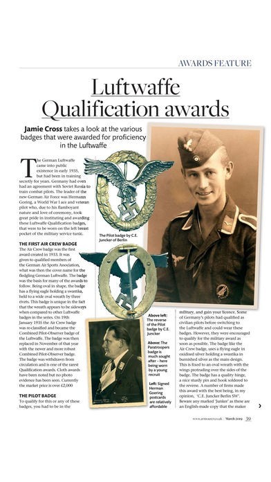 App Storeより引用The Armourer is the UK’s No.1 magazine for militaria collectors and military history enthusiasts with a worldwide readership. Launched at a militaria fair in 1994, the Armourer is a magazine by collectors, for collectors. In every issue, an inexhaustible stream of artefacts linking us to past conflicts throws up interesting stories. Regular articles on ordnance, bayonets, medals, insignia, uniforms, military museums, auctions, World War I and World War II make the Armourer the UK’s premier militaria magazine.