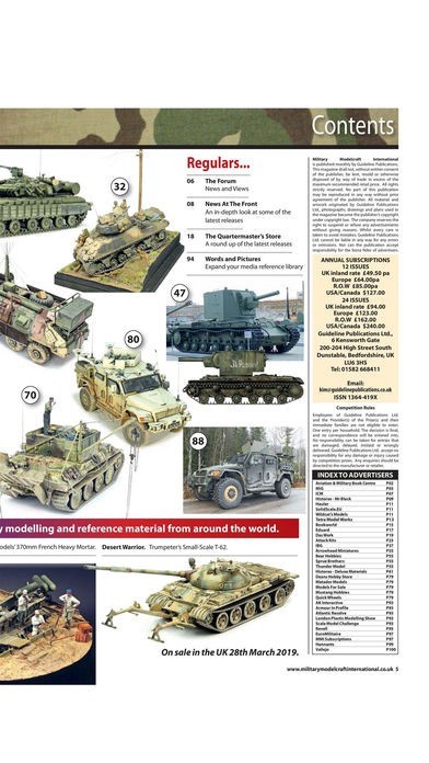 App Storeより引用Military Modelcraft International is the UK’s leading military modelling magazine, with a truly global reach attracting the best modellers in the world to its pages. Each month MMI brings you a mixture of in-depth build articles, reviews of the latest kits and accessories, superb reference articles, and reports from model shows across the world. MMI’s focus is on providing you with the inspiration and knowledge to improve your own modelling skills and gain more from the hobby whether that be from archive photos and references or modelling tricks and tips.