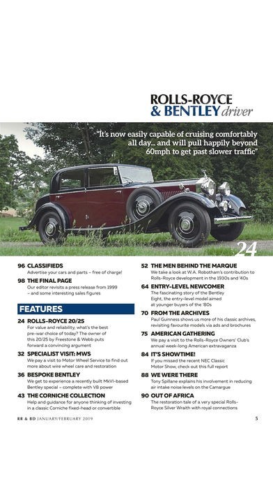 App Storeより引用Celebrating two of Britain’s most prestigious automotive marques, Rolls-Royce & Bentley Driver magazine is the definitive quarterly publication for all Rolls-Royce and Bentley enthusiasts and owners. Principally focusing on the classic models of these luxurious car brands, it will offer comprehensive coverage of the most popular versions from both Rolls-Royce and Bentley, ranging from immediately after WW2 up to around the turn of the millennium. Undoubtedly, there will be some coverage of pre-war models, and we will feature modern classics such as the Bentley GT coupe. Whatever the model, however, our aim with Rolls-Royce & Bentley Driver magazine is to offer a mix of owners’ stories, buying advice, technical hints and tips and inspiration on how to restore, maintain, and, crucially, enjoy your favourite Rolls-Royce or Bentley.