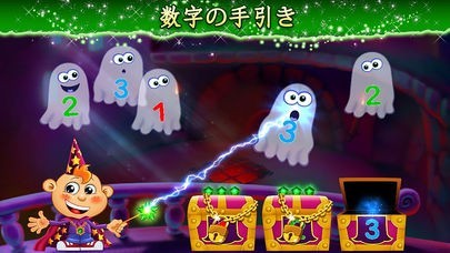 小さな魔法使いキャラクターと一緒に数字を楽しみながら覚えることができます