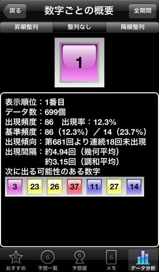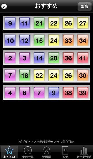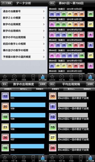 App Storeより引用LOTO6の番号決定支援とデータ分析ツールです。