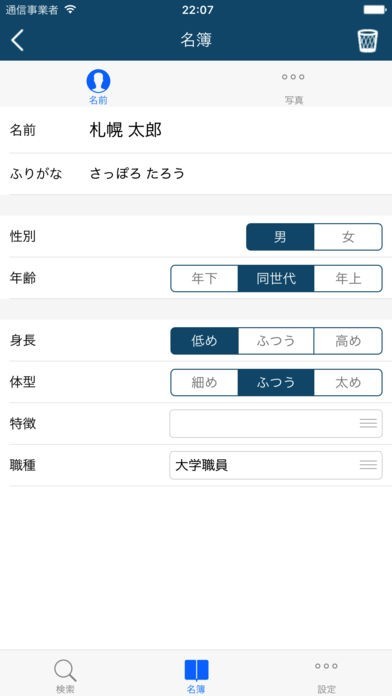 アプリでは登録する人の情報を詳しく入力することができます。名前や年齢はもちろん、身長や体形、さらには自由項目で特徴的な事がらを入力できます。たくさんの情報を見れば、その人を思い出しやすくなるでしょう。