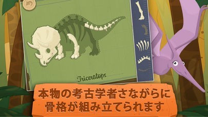 恐竜の骨の発掘をしてその骨を使ってパズルができるというゲームで骨から生きていた頃の恐竜まで再現できるので骨からどういう恐竜になるかを知れるので考古学に興味がある人が楽しめて良いです。