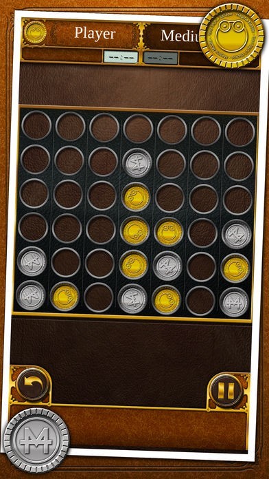 コインを交互に並べ合うボードゲームアプリで縦か横か斜めかどちらか先に4枚ならべたほうが勝ちというゲームで相手の邪魔もできるようになっているので戦略性があって楽しめて良いです。