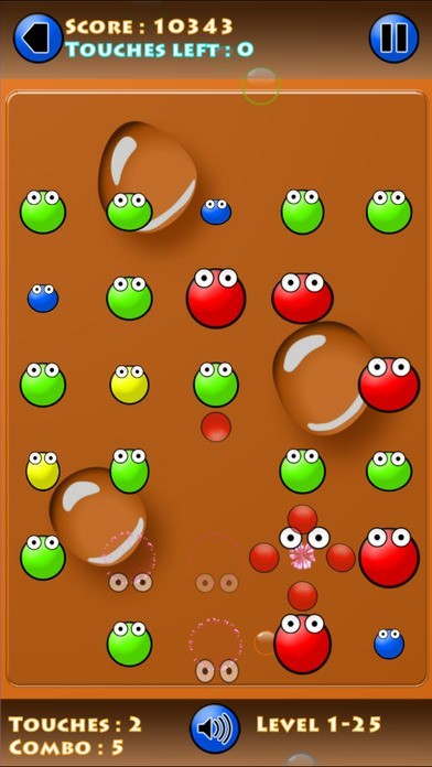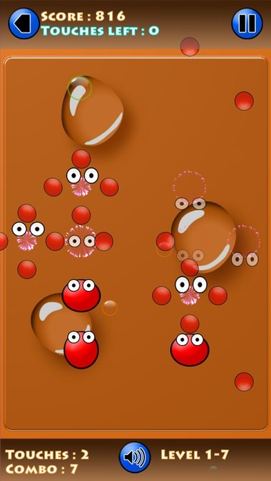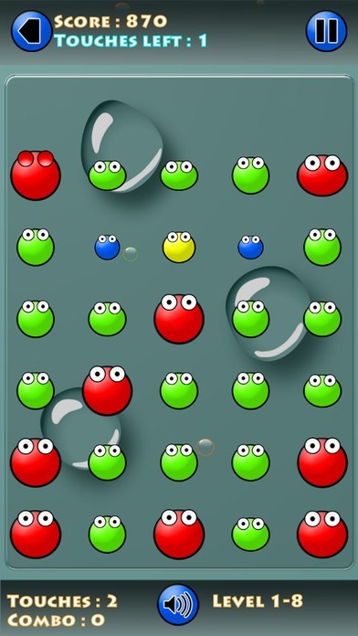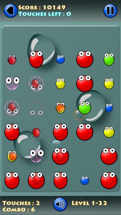 升目上に並べられたバブルはタップすると弾けて消えます。その際に縦横に小さな泡を飛ばします。周囲にあるバブルはその泡に触れると破裂します。つまり1タップでどんどん連鎖的にバブルが弾ける爽快感が味わえます。