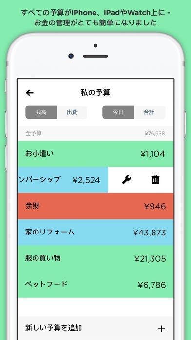 毎月の予算を管理し、あといくら使えるか一目でわかるので節約意識が高まります。