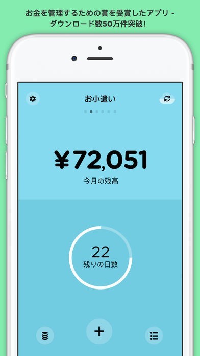 一日に出すことができる額を入力することでその費用を目標値にできます。購入や支出で出て行った分を都度記すだけで残りの上限を確認でき、明確な残金をベースにできます。