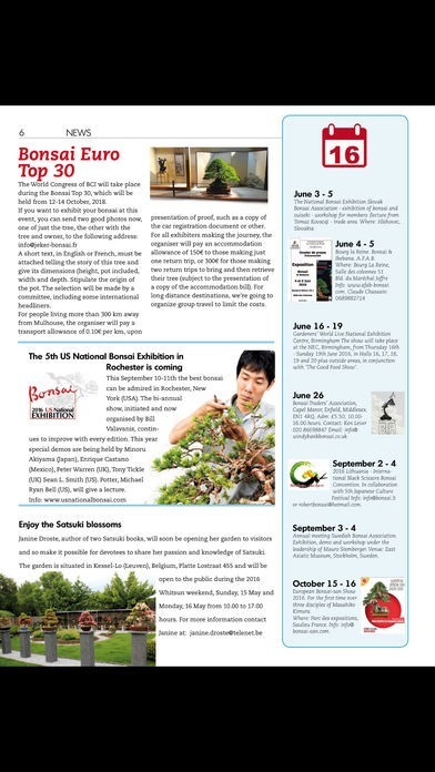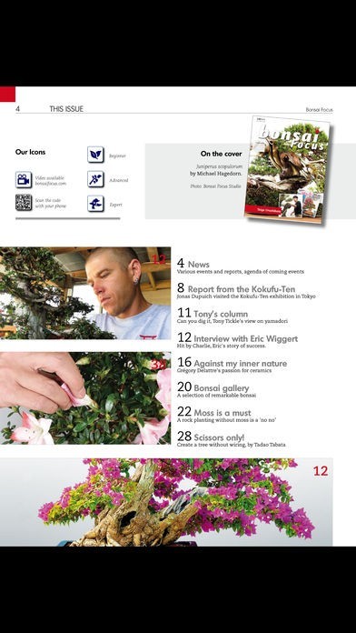 App Storeより引用Discover how fascinating Bonsai Focus is! With informative reports and stunning photography every two months, Bonsai Focus Magazine makes you eye-witness extraordinary bonsai, magnificent stylings of famous masters, educational techniques and useful maintenance tips. Articles are often supported by exclusive and breathtaking videos.